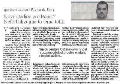 V souvislosti n?kolikrát avizovanou, n?kolikrát slíbenou, n?kolikrát m?n?nou a nakonec jednozna?n? ukon?enou výstavbou nového ostravského stadionu (a nejen výstavbou, taky p?estavba M?stského stadionu nám byla volenými zástupci prezentována v diametráln? jiné podob?, než jaká byla nakonec schválena. A otázkou je, co se nakonec bude skute?n? d?lat. Slíbit se dá všechno) se objevilo mnoho ?lánk?. Dle reakcí na Pokecu vás asi nejvíce zaujaly dva ?lánky, které si dovolujeme níže v ?lánku pro lepší ?itelnost uvést v p?episu, v?etn? originálu.