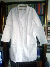 V pátek ve?er za?alo párání. U modrého plášt? šlo celkem dob?e, to jsem zvládl z?ásti i já nemotora. U toho bílého byly švy lepší – ti dokto?i si asi vymýšlejí i v hadrech, co mají na sob?. V život? bych ne?ekl, že i léka?ské plášt? mohou být zna?kové – na netu najdeš i v cen? nad dva litry... Manželka to nakonec n?jak vypárala, rozhodila rukávy, rozst?ihla záda, prohodila díly mezi sebou a sešpendlila. Pokra?ování bylo v sobotu ve?er, kdy to vše vzala a šla na stroji šít. Za deset minut p?išla – stroj se pokazil... „“A je to v prdeli,“ ?ekl jsem si. Nebylo. Vzala jehlu a nit a po t?ech hodinách (!!!) byly plášt? na sv?t? s tím, že je to provizorní pouze na ned?li a po oprav? stroje se to vše doladí. Dokonce byly na kapsi?ky našity i znaky Baníku, když p?edtím zaho?ela pod n?žkami dv? stará trika práv? s t?mito znaky. A to ješt? dodám, že našila první rukáv a pak si všimla, že to prohodila špatn? – nové párání a znova... Ne ?ekni – není k zulíbání? :-)