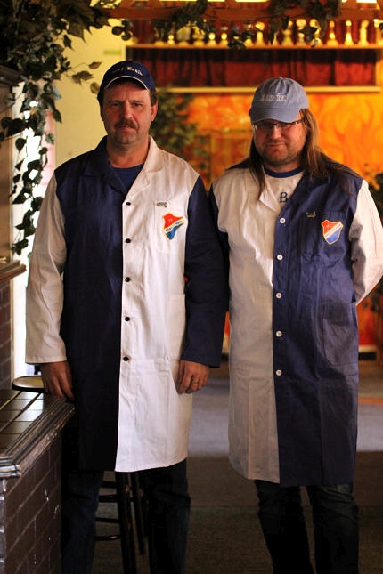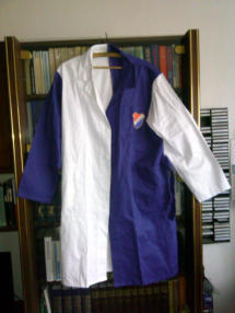 Dalším významným rozhodnutím bylo oble?ení. Má d?ravá pam?? kdesi vydolovala, že jsme tenkrát chodili v takových modrobílých pláštích. A bylo to! Manželka jenom p?evrátila o?i, když jsem jí ?ekl, co ji ?eká, ale n?jak proti nebyla a tak jsem šel do toho. Pro?muchal jsem pár obchod?, prolezl na netu n?kolik e-shop?, n?kde n?co m?li, ale protože jsem se rozhodl až ve st?edu v týdnu p?ed zápasem, pro mnohé to bylo v tak krátké dob? do Studénky nedodatelné. Už jsem to málem odpískal, když vtom mi napsal na ICQ ammy: „Po?kej, chodím každý den na ob?d kolem n?jakého obchodu s pracovními od?vy, mrknu tam.“ A za hodinu byl modrý a bílý pláš? na sv?t? :-)